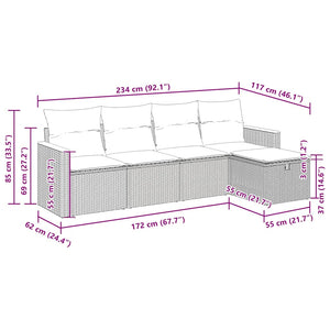 HKH 5 Pcs Conjunto Sofás de Jardim com Almofadões Vime Pe - Preto