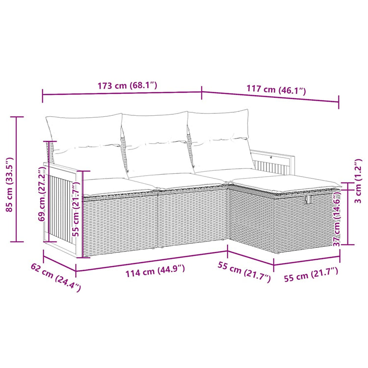 HKH 4 Pcs Conjunto de Sofás para Jardim C/ Almofadões Vime Pe - Preto