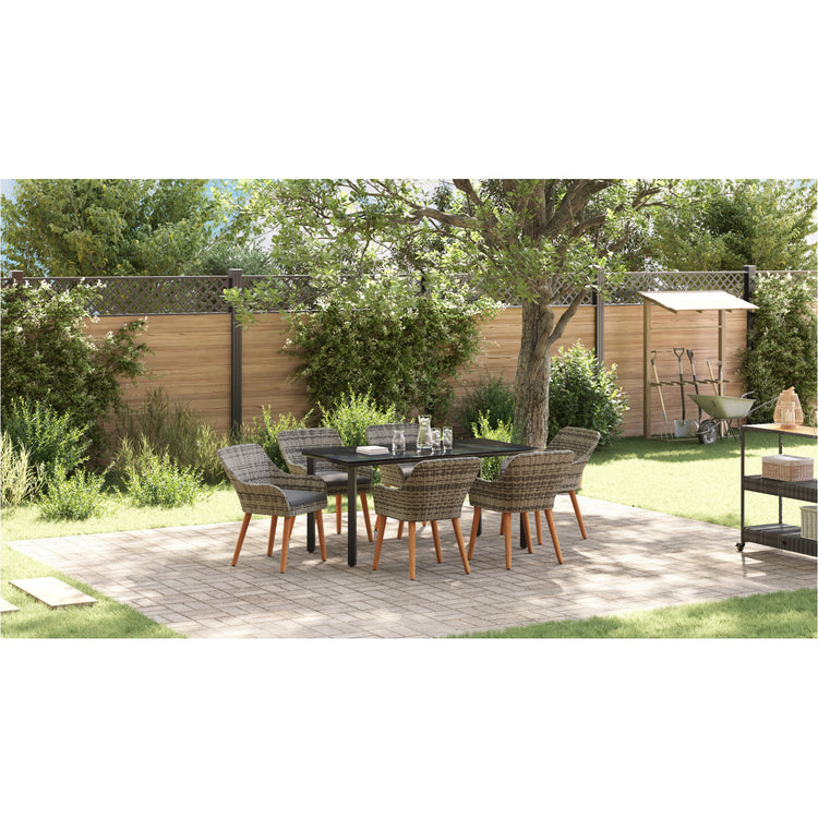 HKH Conjunto de Jantar de Jardim com 7 Peças em Rattan Poly Cinza - Cinzento