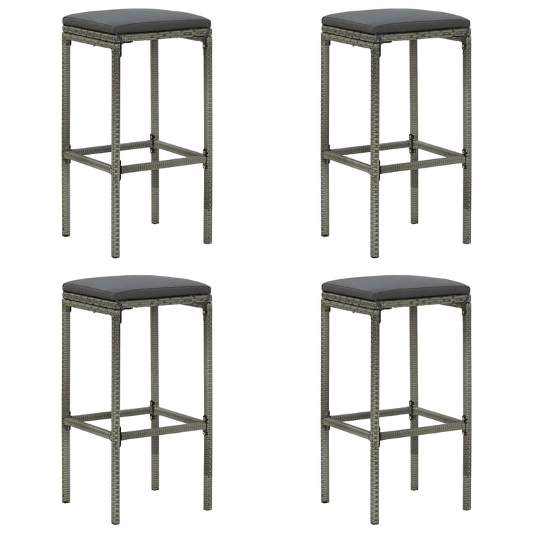 HKH 5 Pcs Conjunto de Bar P/ Jardim C/ Almofadões Vime Pe - Cinzento