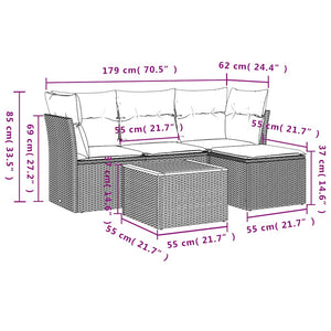 HKH 5 Pcs Conjunto Sofás de Jardim com Almofadões Vime Pe - Preto