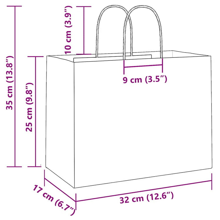 HKH Sacos de Papel 250 Unidades com Alças - Castanho - 32x17x25 cm