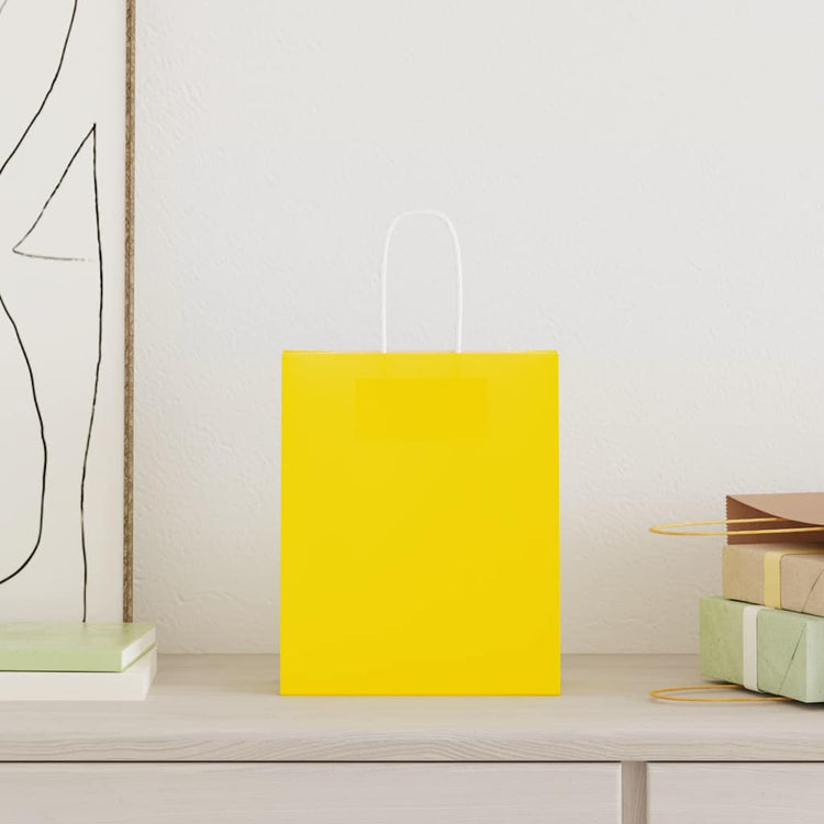 HKH Sacos de Papel 250 Unidades com Alças - Amarelo - 18x8x22 cm