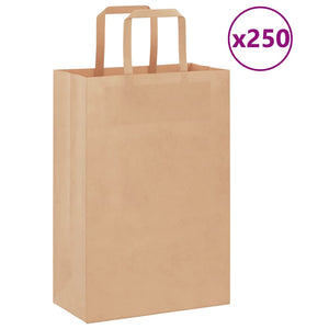 HKH Sacos de Papel 250 Unidades com Alças - Castanho - 21x11x31 cm