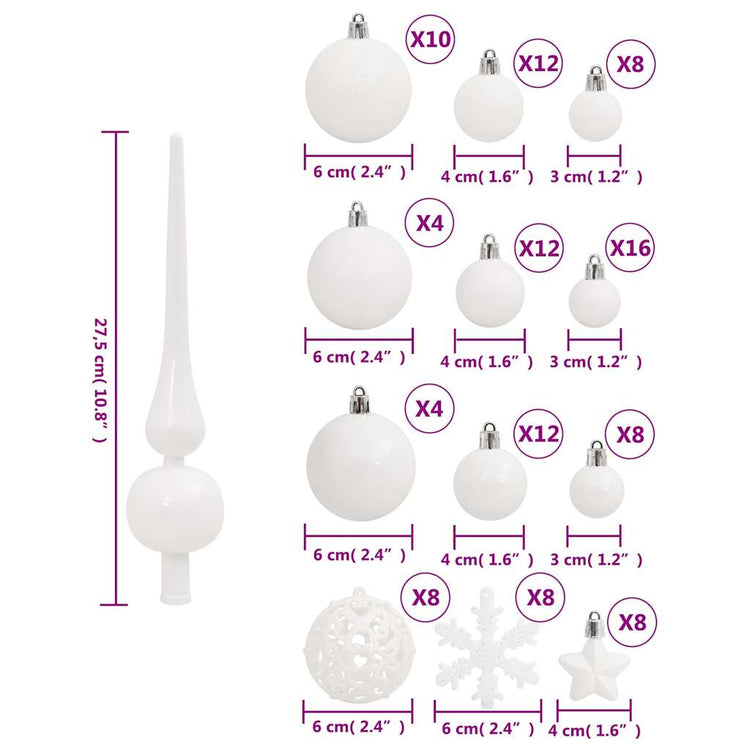 HKH Conjunto de 111 Enfeites de Natal em Poliestireno - Branco