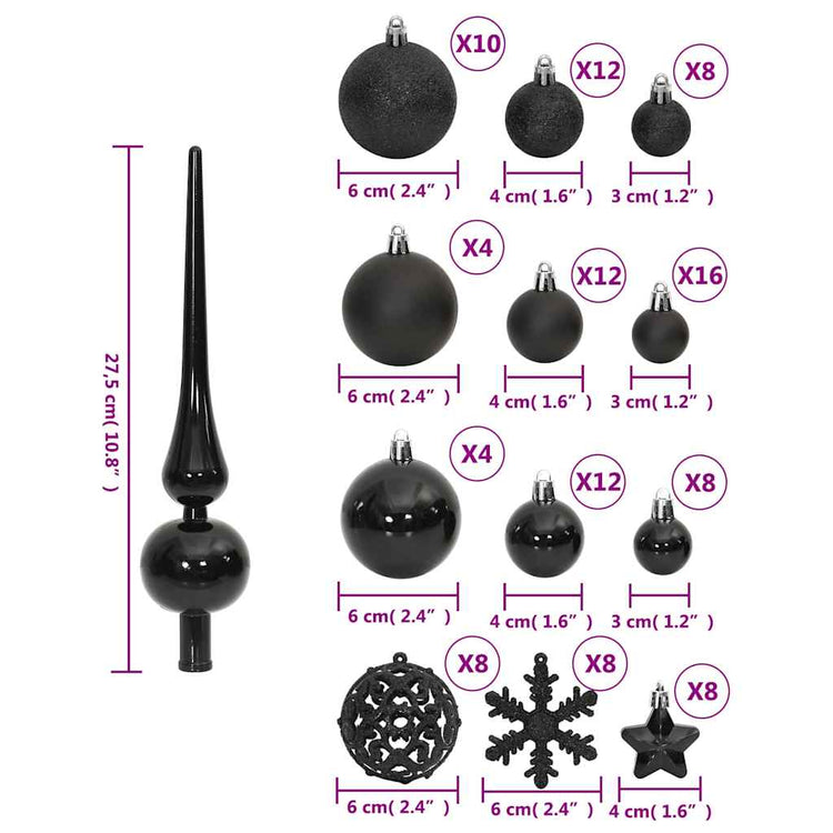 HKH Conjunto de 111 Enfeites de Natal em Poliestireno - Preto