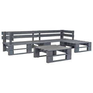 HKH 4 Pcs Conjunto Lounge de Jardim Paletes Madeira Cinzento - Cinzeto
