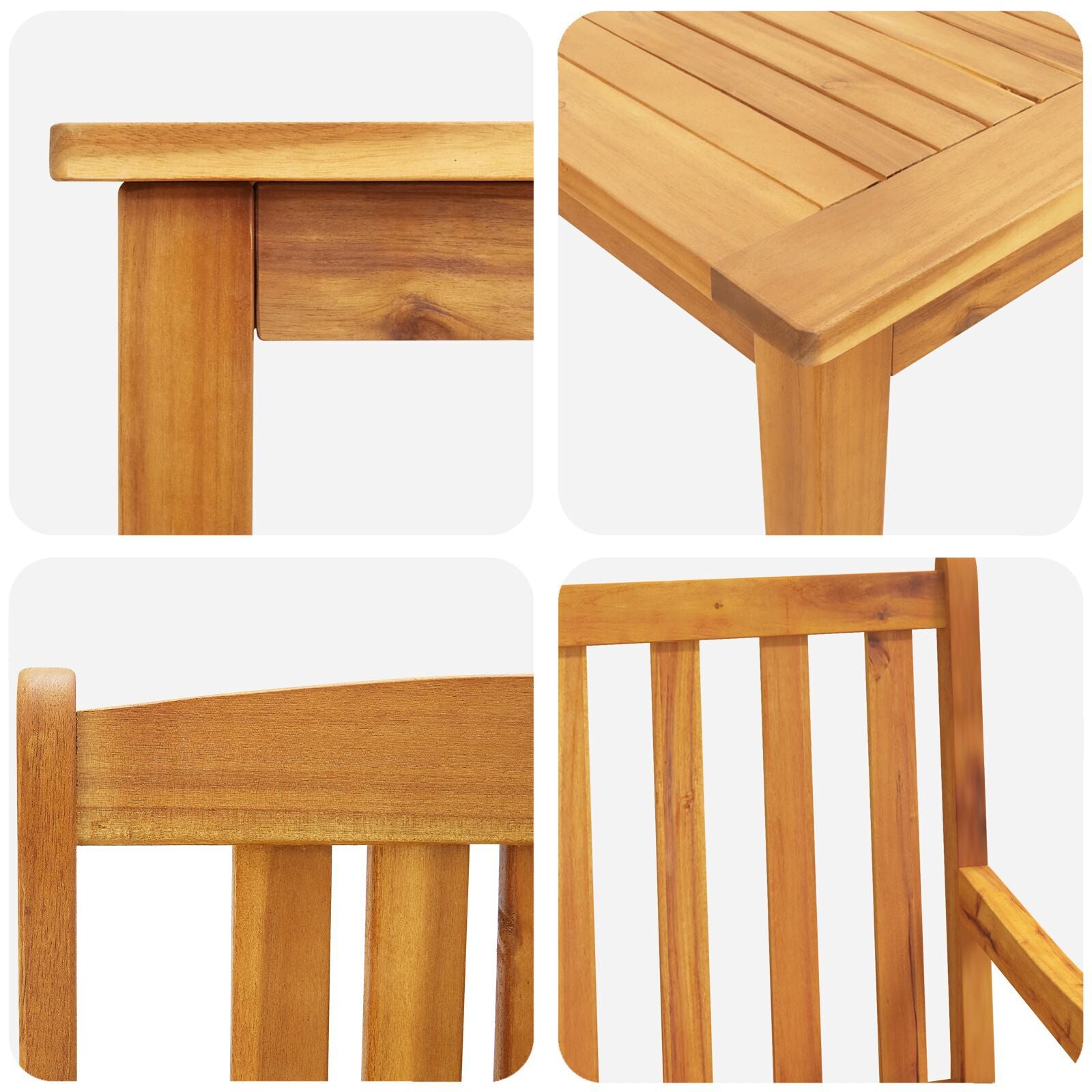 Este Conjunto de Jantar de Madeira de Acácia Sólida é um espaço acolhedor para refeições familiares e encontros, misturando um design moderno com um toque rústico. O acabamento em madeira natural traz uma atmosfera cálida, tornando-o perfeito para refeições ao ar livre com amigos e família.