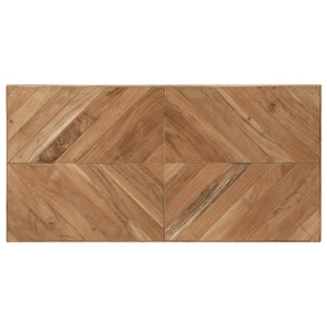 Esta mesa de jantar em madeira atribui um aspeto industrial e é um excelente complemento para a sua cozinha e sala de jantar. Feita à mão com madeira de acácia maciça e madeira de mangueira, esta mesa de jantar é muito estável e durável. As pernas de aço revestido a pó preto garantem uma estabilidade extra. O robusto tampo apresenta um design com um padrão chevron e mosaico, tornando-o uma decoração especial para o seu interior. Também pode ser usada para colocar bebidas ou comida. Nota importante: as cores e os grãos podem variar de peça para peça, tornando única cada uma das nossas peças. A entrega é aleatória.nan