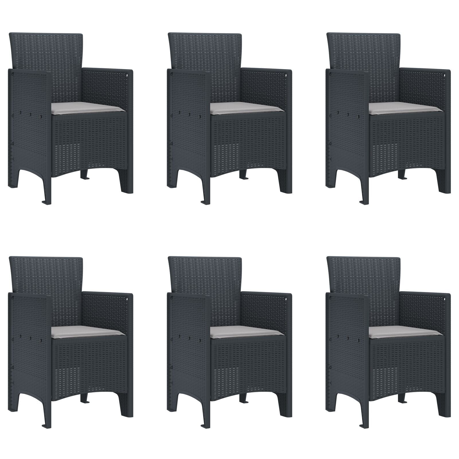 HKH Conjunto de Jantar para Jardim de 7 Peças com Almofadas Cinza Escuro Rattan - Carvão