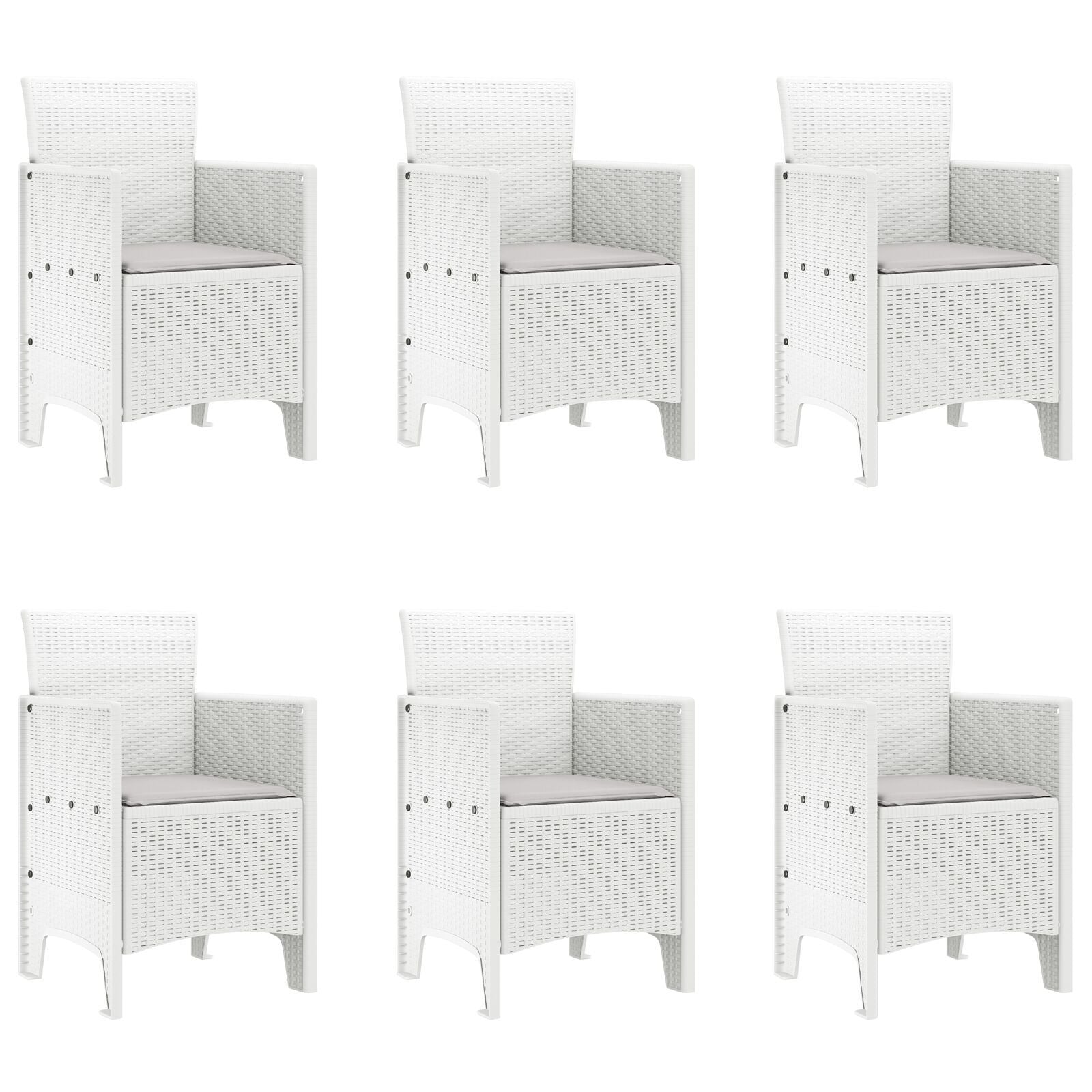 HKH Conjunto de Jantar de 7 Peças com Almofadas Poli Rattan - Branco