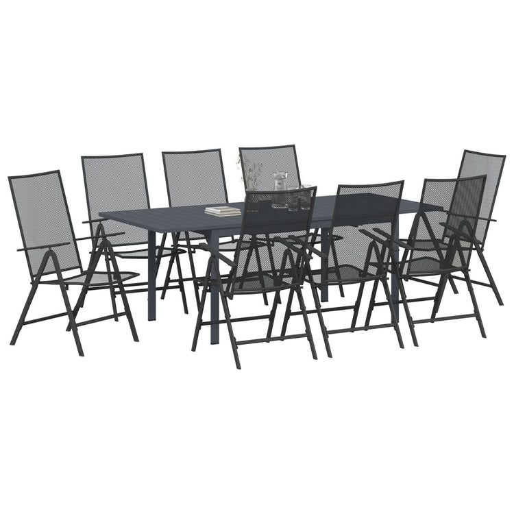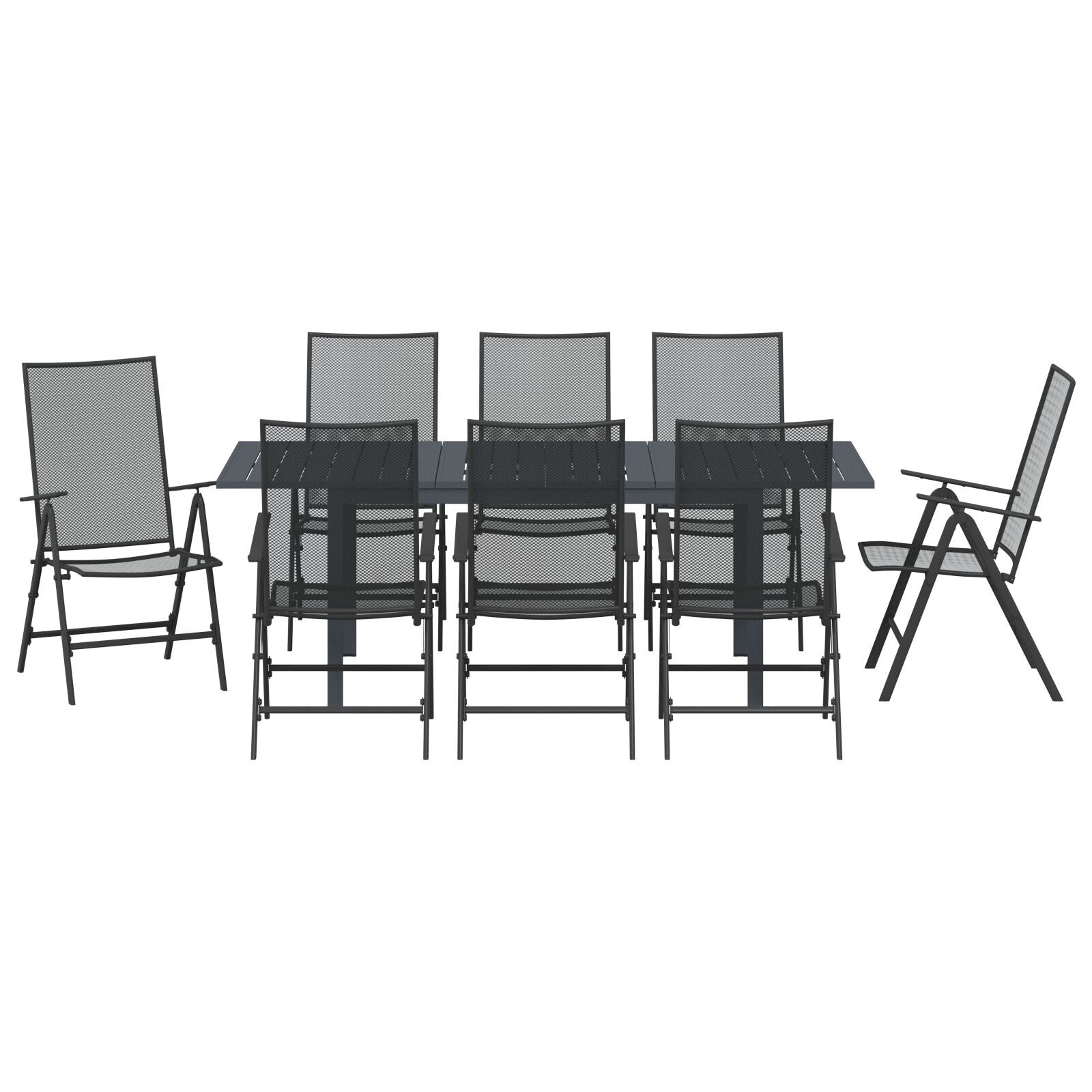 Conjunto de Móveis de Corredor HKH de 9 Peças em Aço Antracite, Mesa de Jardim Extensível HKH Antracite (140-210)x90x73 Cm em Aço - Preto