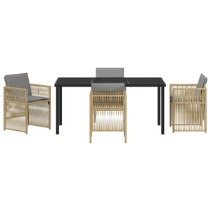 HKH Conjunto de Jantar de Jardim de 5 Peças com Almofadas em Vime , Mesa de Jardim HKH Preta 160x80x73 Cm Vidro Temperado - Bege