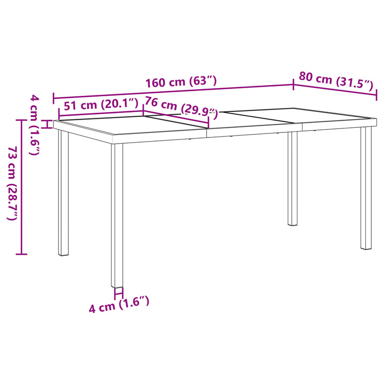 - Estrutura Robusta: A estrutura de aço resistente oferece estabilidade sólida, garantindo que o teu conjunto de jantar aguente todos os climas. O acabamento em pó torna-o durável, mantendo-o sempre com bom aspecto.