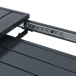Este conjunto moderno de mesas de pátio inclui duas mesas retangulares extensíveis grandes, feitas para uso exterior. Feitas de alumínio com revestimento a pó resistente, este conjunto tem um acabamento suave e mate que realça o seu design elegante, tornando-se um ponto focal em qualquer jardim ou pátio.