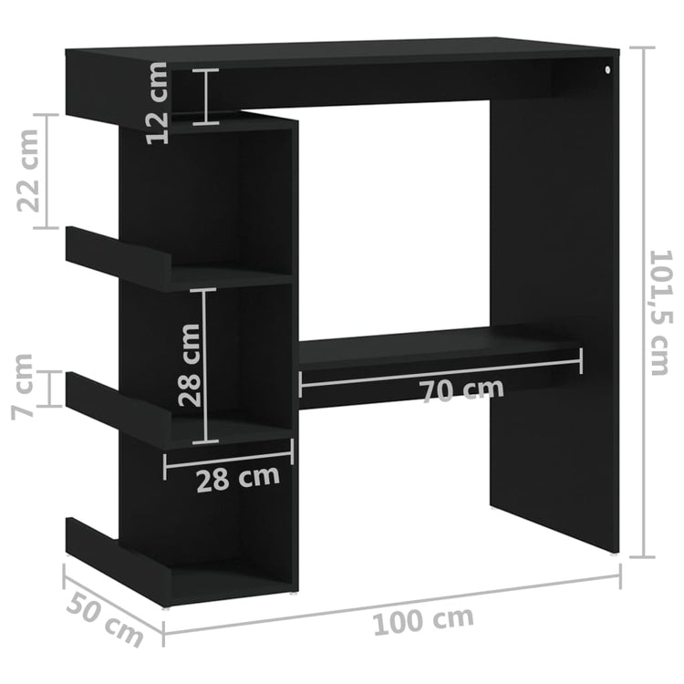 HKH Mesa de Bar com Prateleiras em Derivados de Madeira - Preto