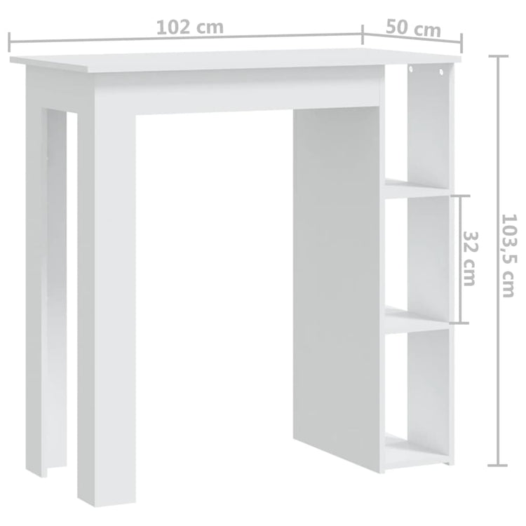 HKH Mesa de Bar com Prateleiras em Derivados de Madeira - Branco