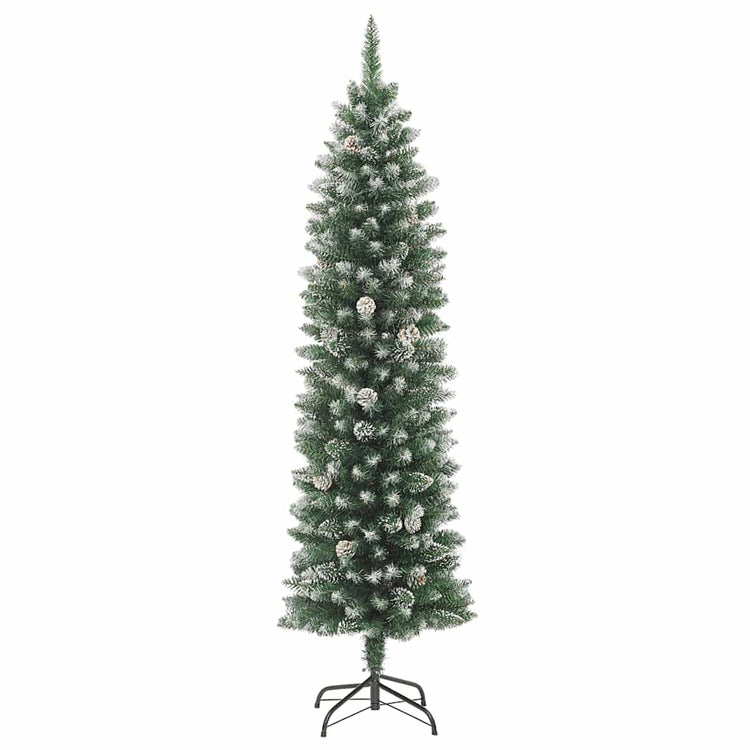 Dê à sua casa uma atmosfera festiva única e alegre, com esta clássica árvore de Natal fina! Design fino: esta árvore fina acrescenta um charme atraente e atmosfera festiva ao seu corredor ou a qualquer espaço estreito.Suporte robusto: a árvore artificial possui um robusto suporte de aço, que proporciona à árvore uma ótima estabilidade.Pontas em PVC: a decoração de Natal apresenta pontas pontiagudas e normais, garantindo uma aparência realista e bonita.Bonita decoração: a árvore de Natal é ainda entregue com pinhas, oferecendo um maravilhoso efeito natural. É também decorada com neve artificial, que lhe confere um espetacular aspeto que se assemelha a flocos de neve.