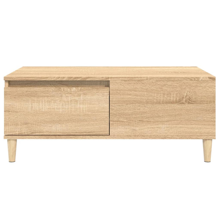 Dê um toque de elegância à sua sala de estar com esta moderna mesa de centro. Material durável: os derivados de madeira possuem uma qualidade excecional e oferecem uma superfície suave bem como força, estabilidade e resistência à humidade.Pés de madeira: os pés em madeira de eucalipto maciça conferem à mesa de apoio um visual natural e agradável, ao mesmo tempo que garantem estabilidade.Amplo espaço de arrumação: esta mesa possui 1 gaveta para manter os seus artigos essenciais bem organizados e ao seu alcance.Tampo robusto: o tampo robusto é perfeito para colocar bebidas, alimentos e outros artigos decorativos.Design intemporal: esta mesa de apoio ao sofá apresenta linhas simples e um aspeto minimalista atribuindo um toque intemporal de estilo escandinavo à sua decoração. Útil saber:De forma a tornar a montagem o mais fácil possível, cada produto é entregue com um manual.nan
