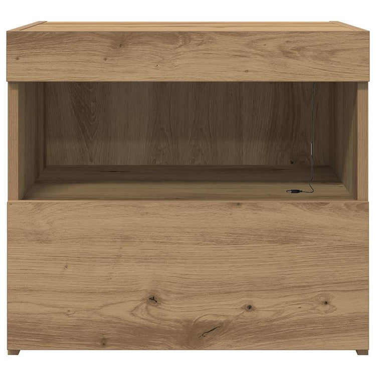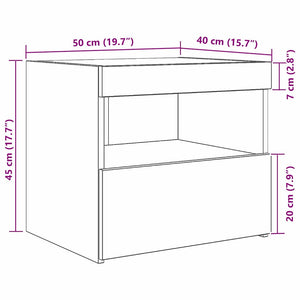 Esse criado-mudo combina um armazenamento útil com um visual único, sendo uma super adição a qualquer quarto. Ele é prático e compacto, oferecendo muito espaço e se encaixando na vibe moderna do seu ambiente. A iluminação LED chama atenção e traz um brilho aconchegante, ideal pra suas necessidades noturnas. Com certeza dá um toque moderno ao seu espaço, sendo não só estiloso, mas também bem útil. Feito de Madeira Engenharia Feito de madeira engenheirada resistente, esse criado-mudo é confiável e leve. Ele é durável, garantindo que vai durar anos sem problemas. O acabamento liso dá um visual moderno. Soluções de Armazenamento Inteligentes Com uma gaveta espaçosa e prateleiras abertas, é fácil organizar suas coisas. Ele é flexível pra guardar despertador, livros ou qualquer outra coisa que você precise ao alcance. Iluminação Ambiente LED As fitas LED multicoloridas realmente mudam tudo, oferecendo uma luz personalizada pra combinar com seu humor. Se você quer ler ou criar um clima, as LEDs tornam o criado-mudo super versátil. Design Contemporâneo Esse criado-mudo tem um design moderno, com linhas elegantes e sem fru-fru. Seu visual discreto e sofisticado combina com os estilos de quarto atuais, aumentando a beleza e a função. Manutenção Fácil Pra mantê-lo bonito, siga as instruções de montagem e use limpeza suave. Evite produtos agressivos pra cuidar bem da superfície e aproveitar a estética por muito tempo. Por favor, utilize apenas entrada certificada de 5V DC. Uma voltagem superior pode causar sobreaquecimento, danificar o dispositivo e aumentar o risco de sobreaquecimento e incêndio. Não conecte este produto a qualquer fonte de energia diferente da descrita no manual, na placa de identificação ou especificamente recomendada pela vidaXL. Este aparelho não deve ser usado por crianças com 14 anos ou menos, nem por pessoas com capacidades físicas, sensoriais ou mentais reduzidas ou sem experiência e conhecimento sobre o uso de aparelhos eletrônicos. A eletricidade é perigosa. Danos, instalação inadequada, uso ou alterações (substituição de componentes individuais) podem danificar o aparelho, causar choque elétrico e colocar o usuário em risco. Não utilize este produto em atmosferas explosivas, como na presença de líquidos inflamáveis, gases, poeiras ou em temperaturas acima de 50 graus Celsius. Não ligue o produto se o cabo de conexão ou a fonte de alimentação estiver visivelmente danificado. Se o cabo externo flexível ou o fio deste dispositivo estiver danificado, ele deve ser substituído exclusivamente pelo fabricante, agente de serviço ou pessoa qualificada para evitar riscos. Desligue a energia durante a instalação e manutenção. Certifique-se de que as lâmpadas estão frias. A fonte de luz deste aparelho não é substituível; quando atingir o fim da sua vida útil, todo o aparelho deve ser substituído. Somente para uso interno, não utilize este produto ao ar livre.nan