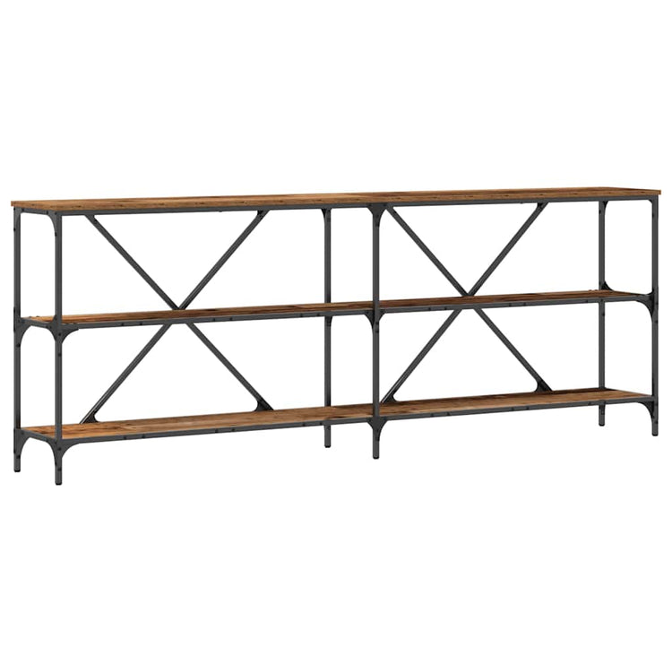- Materiais: Feita de madeira engenharia de qualidade e detalhes em ferro, essa mesa console é super durável e tem um visual irado. A superfície resistente a arranhões garante que ela dure mesmo em casas agitadas.