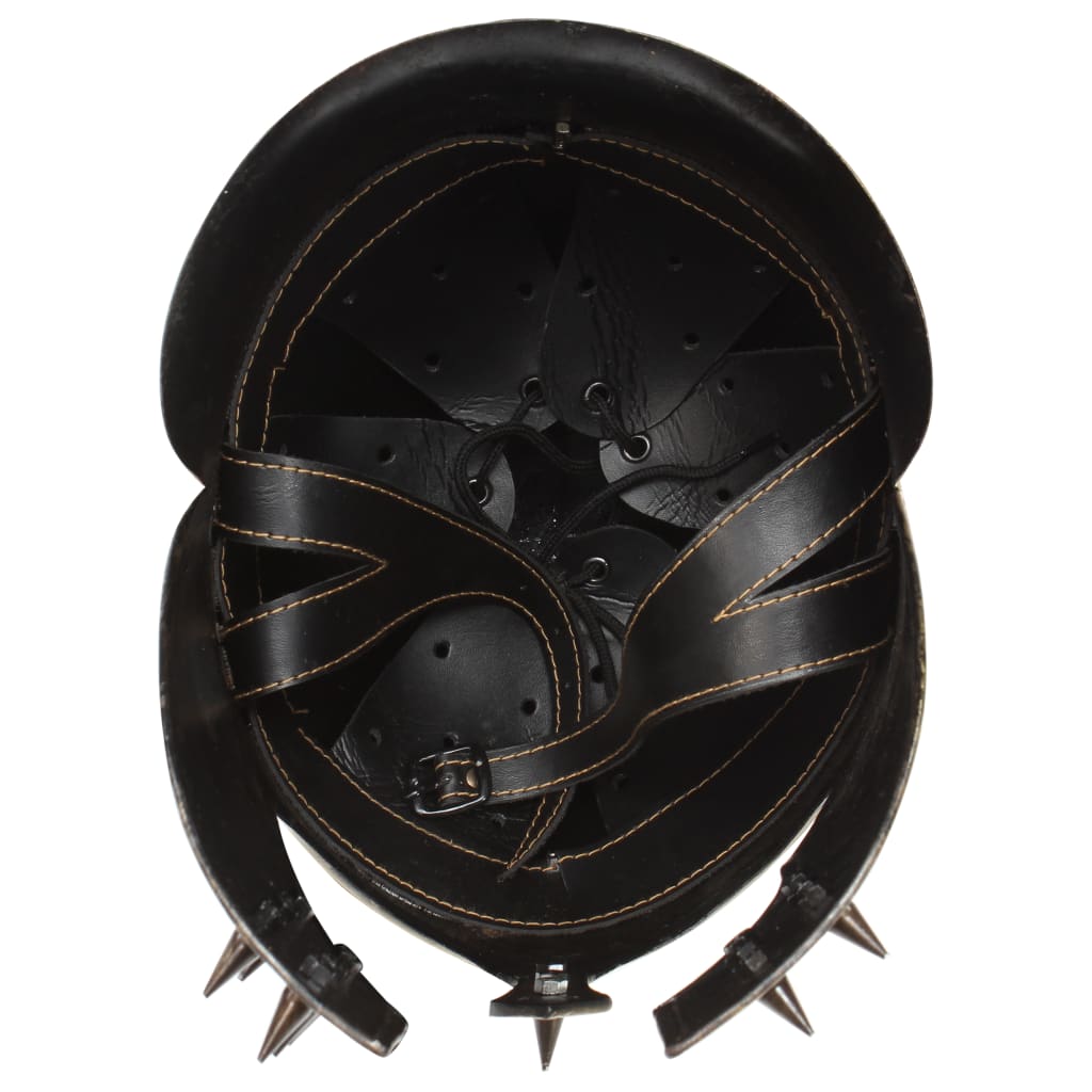 O capacete de armadura é uma réplica exata de um capacete de soldado grego original. Feito com aço de calibre 18, o capacete atraente, de estilo antigo e com materiais resistentes, combina perfeitamente com a sua roupa de soldado. Também é uma peça de exposição atraente.