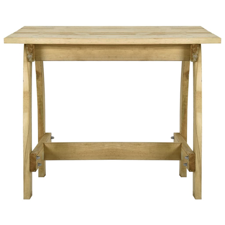 Feita de pinho impregnado a verde, esta mesa de exterior em madeira é muito robusta, durável e resistente à corrosão. A mesa de pátio é uma escolha ideal para momentos relaxantes num jardim romântico de uma casa de campo ou perto de um lago com um jardim idílico, para jantar com a família e amigos. Note que a madeira é um produto natural e pode mostrar imperfeições.