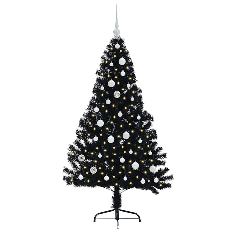 HKH Árvore de Natal Artificial Pré-Iluminada Preto em PVC