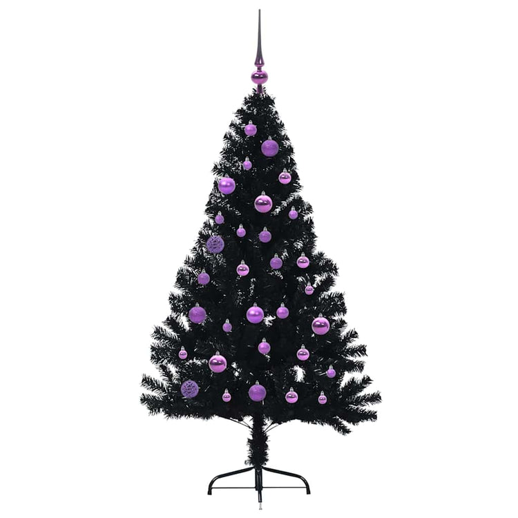 HKH Árvore de Natal Artificial Pré-Iluminada Preto em PVC