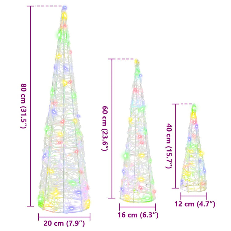 HKH Conjunto de 3 Árvores de Natal em Acrílo - Colorido