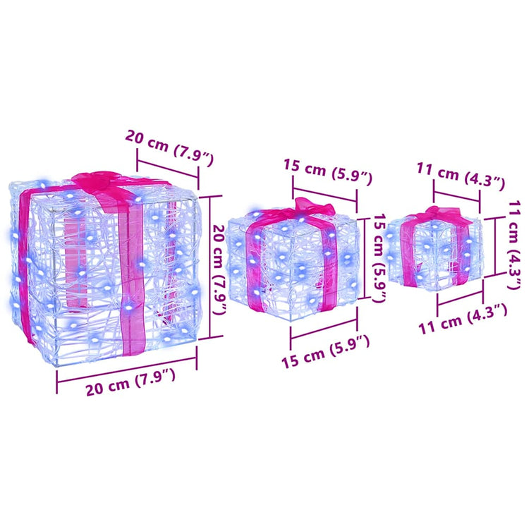 HKH Conjunto de 3 Presentes Decorativos com 60 LED's em Acrílo - Azul