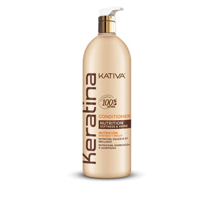 Kativa Keratin Nutrition Softness & Shine Conditioner 1L torna-se um condicionador perfeitamente projetado para manter o cabelo o mais saudável, nutrido e reparado possível. Nomeadamente, devido a processos químicos como o alisamento, a exposição a processos mecânicos como a escovagem e a chapinha, ou a exposição diária aos raios UV e aos radicais livres, os níveis de queratina do cabelo diminuem. Dessa forma, tira a resistência e a vitalidade de toda a fibra capilar. Por sua vez, este condicionador à base de Queratina Hidrolisada e Ceramidas, reconstrói as fibras capilares desde o interior até a superfície danificada, resultando em cabelos mais saudáveis e brilhantes. Além disso, este condicionador também tem uma forte ação condicionante que alisa facilmente o comprimento do cabelo, tornando-o ainda mais desembaraçado e macio. Por outro lado, as pontas também são hidratadas, nutridas e finalmente seladas, deixando os cabelos mais sedosos.