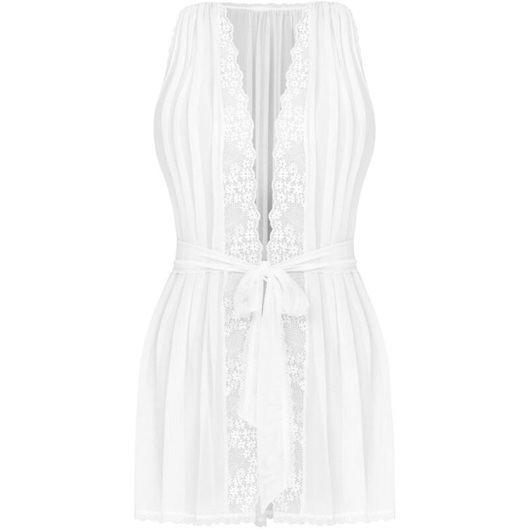 Este robe é uma opção sexy e arejada com um corte único. O tecido frivolamente translúcido e o lindo acabamento em renda decoram seu corpo de maneira sedutora. Este é apenas um prelúdio para o que se tornará uma lembrança prazerosa da noite e o arauto de uma manhã ainda mais quente!