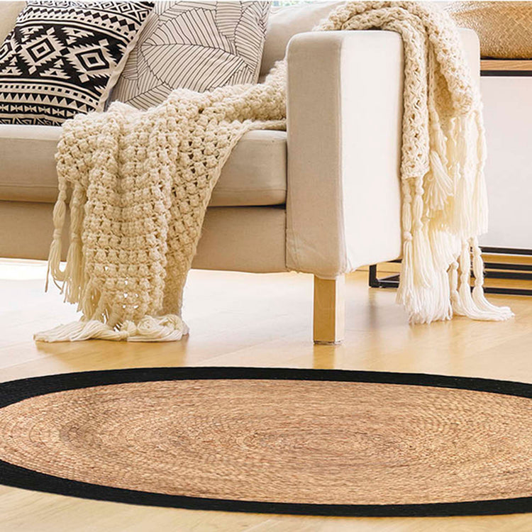 La calidez y el diseño estarán presentes en tu decoración con esta alfombra redonda, - Diámetro: 120 cm - Diseño auténtico - Composición: Textil - Acabado: Borde negro - Diseño bicolor