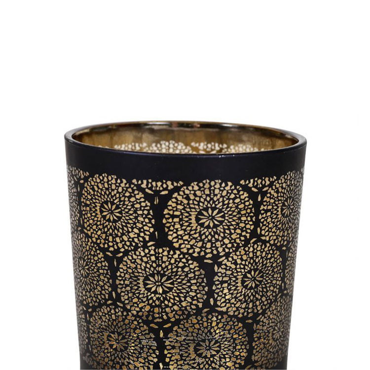 HKH Portavelas de Cristal Mandalas Negro/Oro