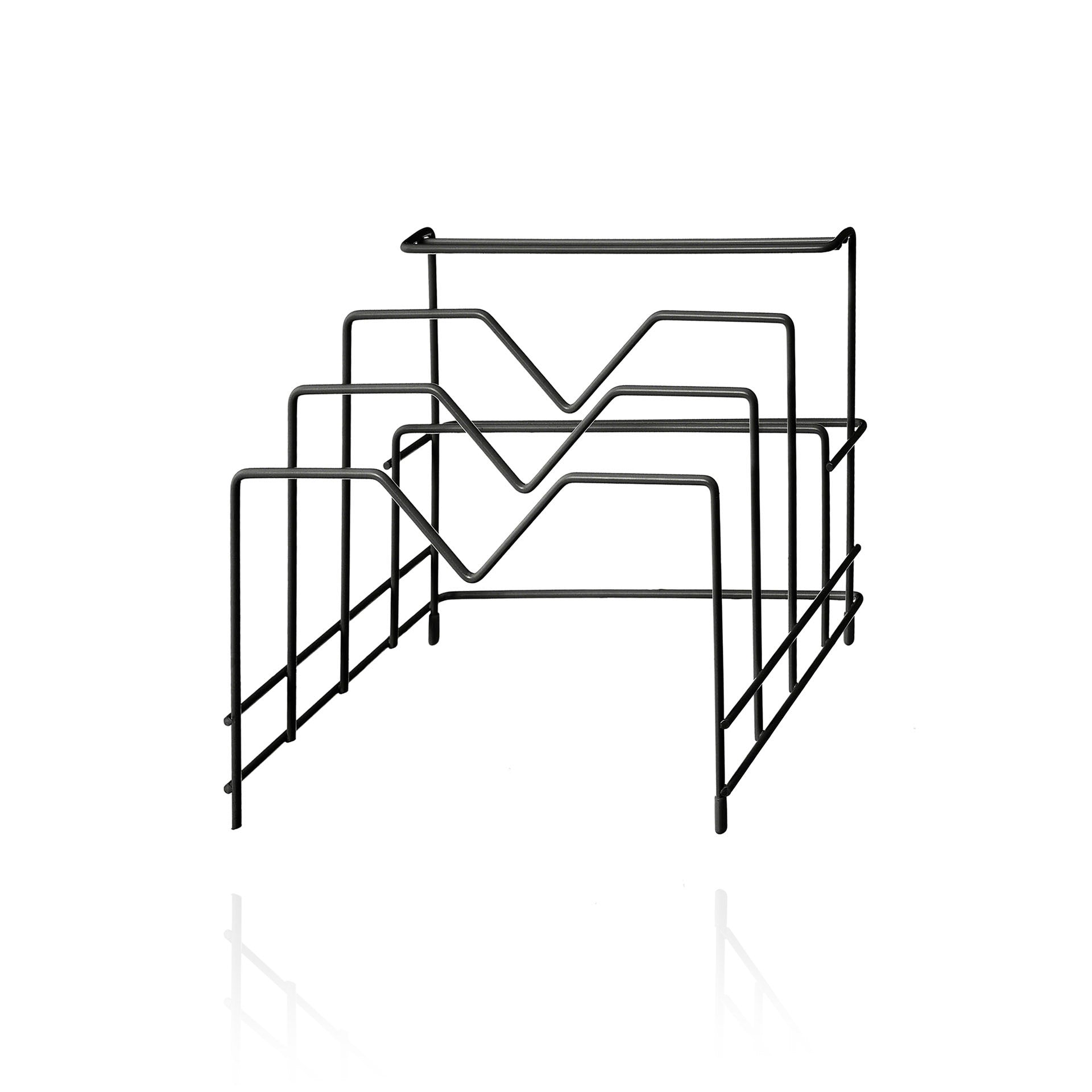 Metal: hierro lacado con tratamiento antioxidante. Soporta 5 kg de peso. 3 espacios de: 25x40x17 cm. 25x4x20,5 cm. 25x4,50x21 cm. Espacio para cuchillos: 24,50x3x21 cm.