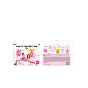 Una caja llena de sorpresas para poder hacer una bonita decoración para una fiesta con temática de princesas.