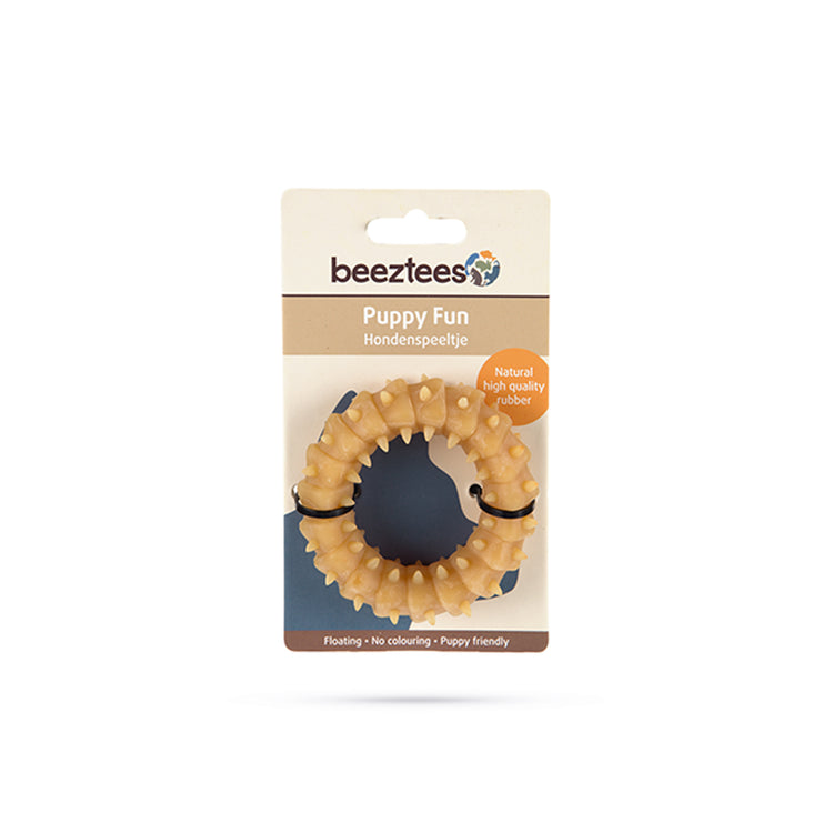 Beeztees Puppy Ring está hecho de caucho natural de alta calidad y es ideal para que tu perro juegue. Las pequeñas espinas alrededor del anillo aseguran que las encías de su cachorro reciban un masaje divertido, lo cual es bueno para los dientes de su cachorro. Esto evita que la placa y el sarro se acumulen y también es divertido jugar con el anillo. El juguete no contiene colorantes y también flota. En definitiva, un juguete divertido que puedes usar para múltiples juegos.