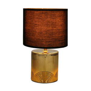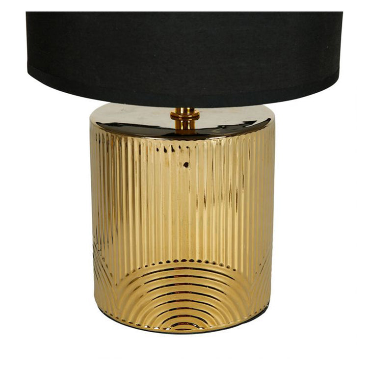 HKH Lámpara de mesa Base de cerámica Pantalla dorada Black Aya