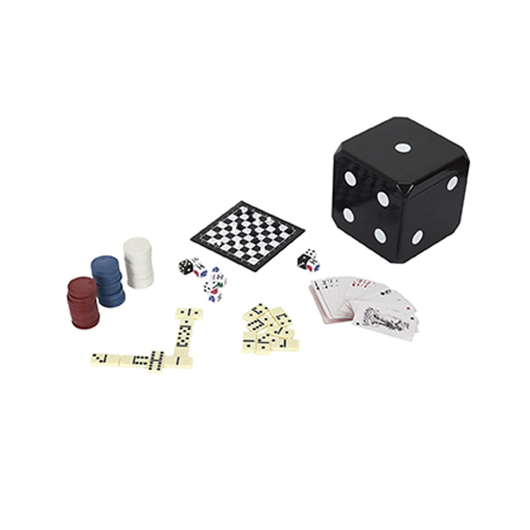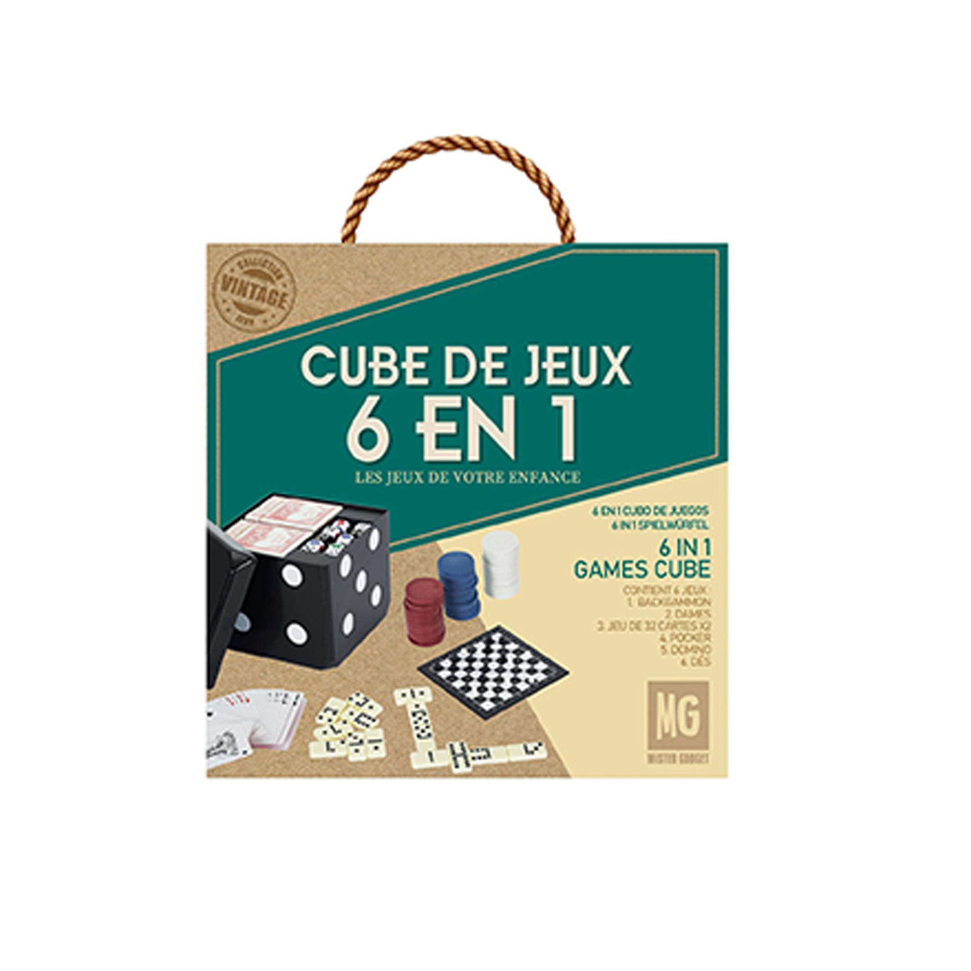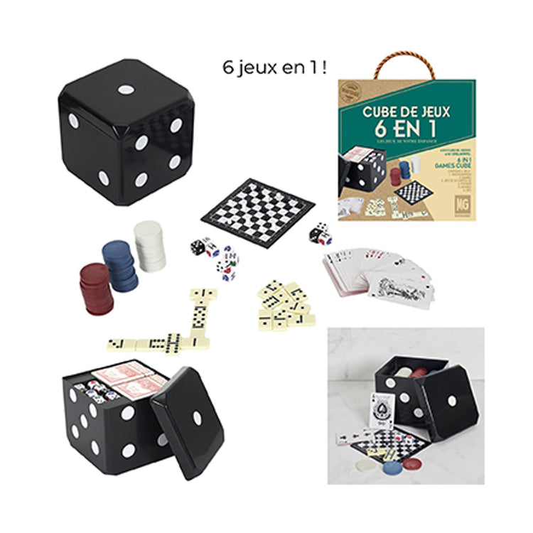 ¡Enriquece tus momentos juntos con este cubo de juego 6 en 1! Incluye: backgammon, damas, cartas, póquer, dominó y dados.