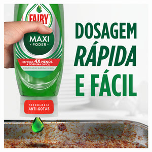O detergente líquido Fairy MaxPower é fornecido numa embalagem invertida sem tampa flip-top para uma experiência de limpeza conveniente. Ao tornar a lavagem rápida e fácil pode sair da cozinha mais rapidamente.