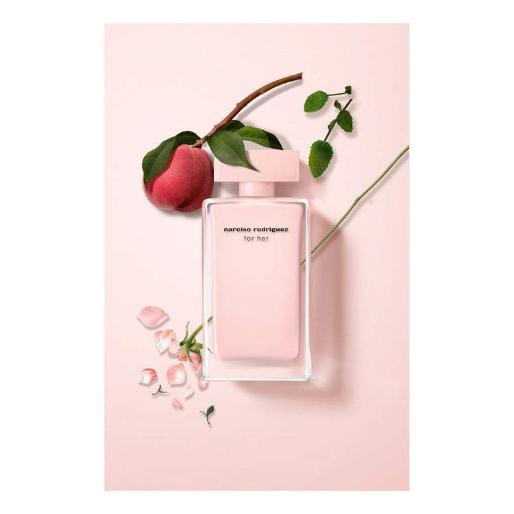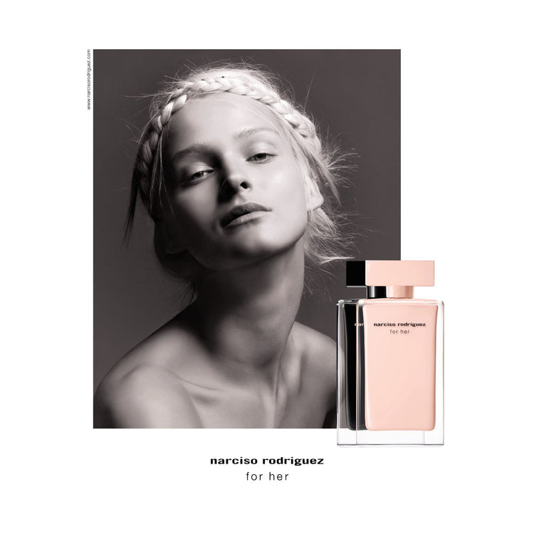 La fragancia For Her honra a todas las mujeres y su elegancia natural. El diseñador Narciso Rodríguez quería que la fragancia reflejara el estilo de su marca de moda y su amor por el arte moderno. Con esto en mente, los perfumistas Christine Nagel y Francis Kurkdjian han creado un aroma almizclado que recuerda el olor de la piel femenina desnuda y, al mismo tiempo, conserva formas simples y suaves.