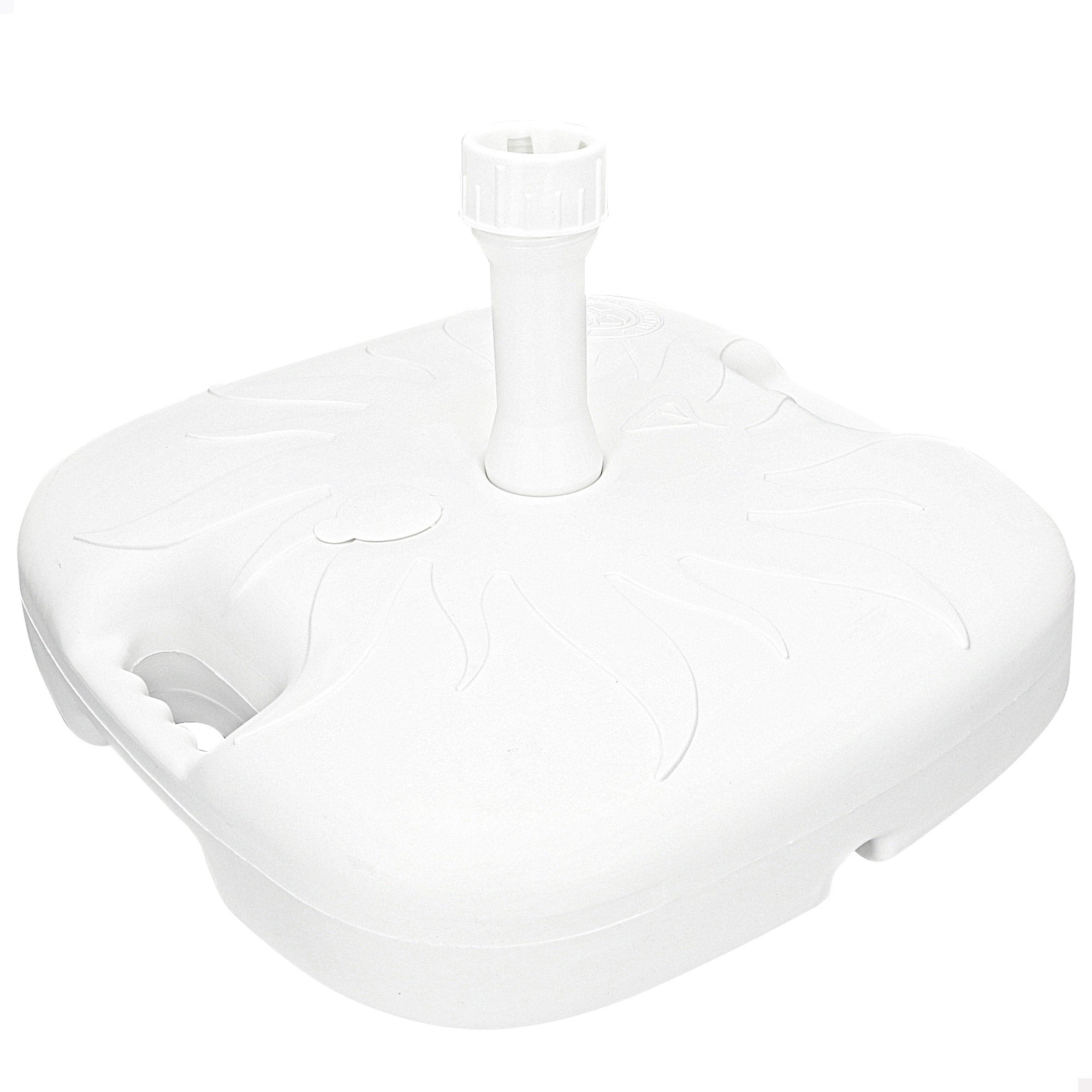Este porta-guarda-chuva Aktive Garden tem formato quadrado e um design simples e elegante em relevo branco. Mede 45x45x29 cm e é perfeito para guarda-chuvas com mastro de 20 a 32 milímetros de diâmetro, já que o tubo possui rosca ajustável. É feito de polietileno de alta densidade, um tipo de plástico muito durável e resistente à água e aos raios solares. A base do guarda-sol possui tanque com tampa de enchimento com capacidade para 18 litros. Além disso, possui uma alça de transporte ergonômica para poder movê-lo facilmente. Ideal para garantir a estabilidade e suporte do seu guarda-chuva contra o vento.