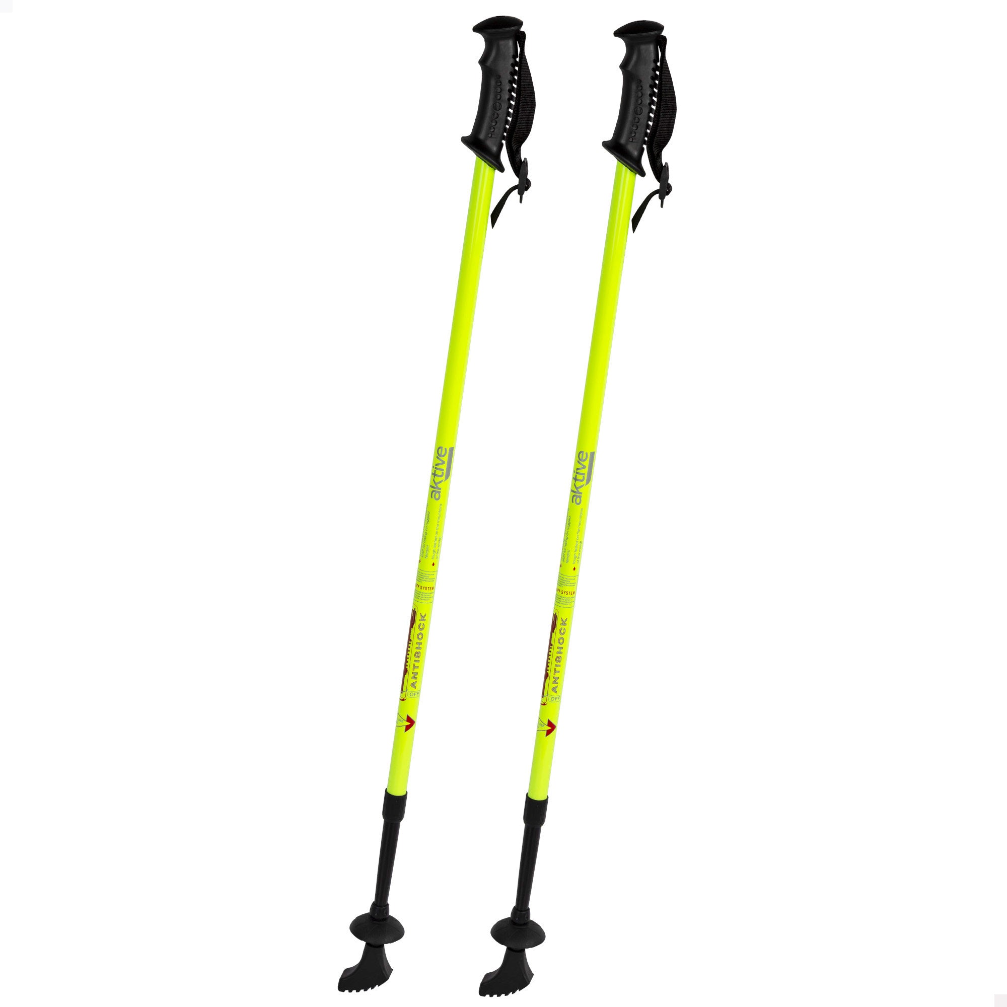 Conjunto de dois bastões de caminhada extensíveis de 82 a 140 cm. Fabricado com liga leve de alumínio e pontas quadradas para maior aderência e mobilidade em terrenos duros. Cabo ergonômico em borracha para maior conforto. Incorpora alças ajustáveis para passar os pulsos para evitar que a bengala caia se você soltar a alça. Pontas antiderrapantes e sistema de amortecimento. Modelo em amarelo. Equipe-se com Aktive!