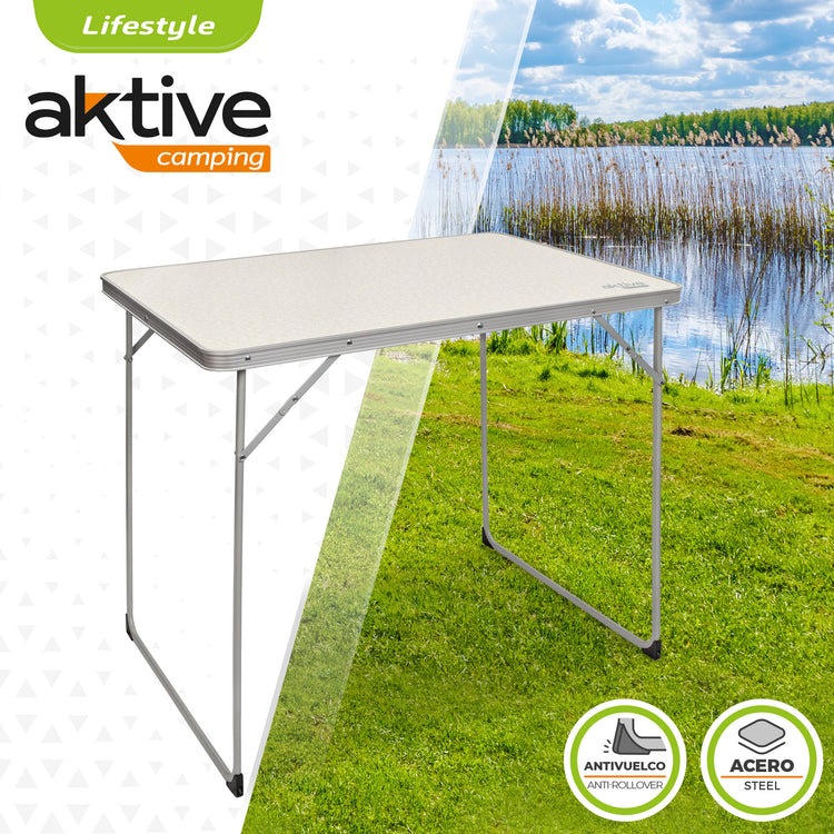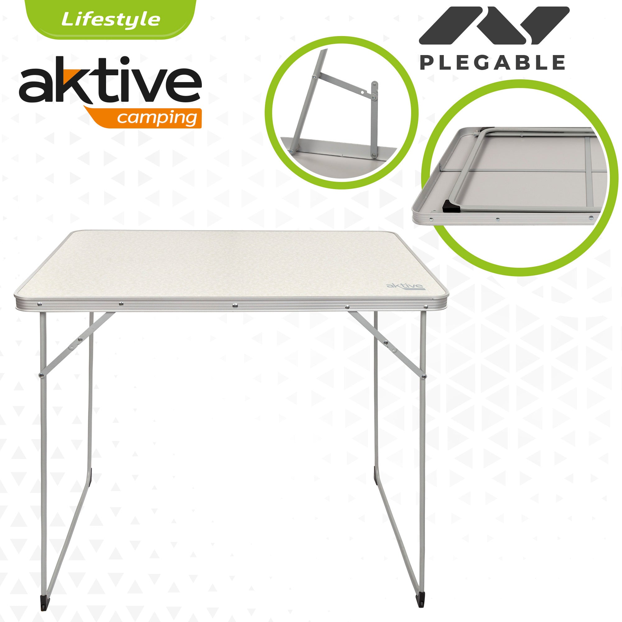 Mesa multifuncional para campismo da Aktive, medidas 80x60x70 cm, pés dobráveis, cor branco