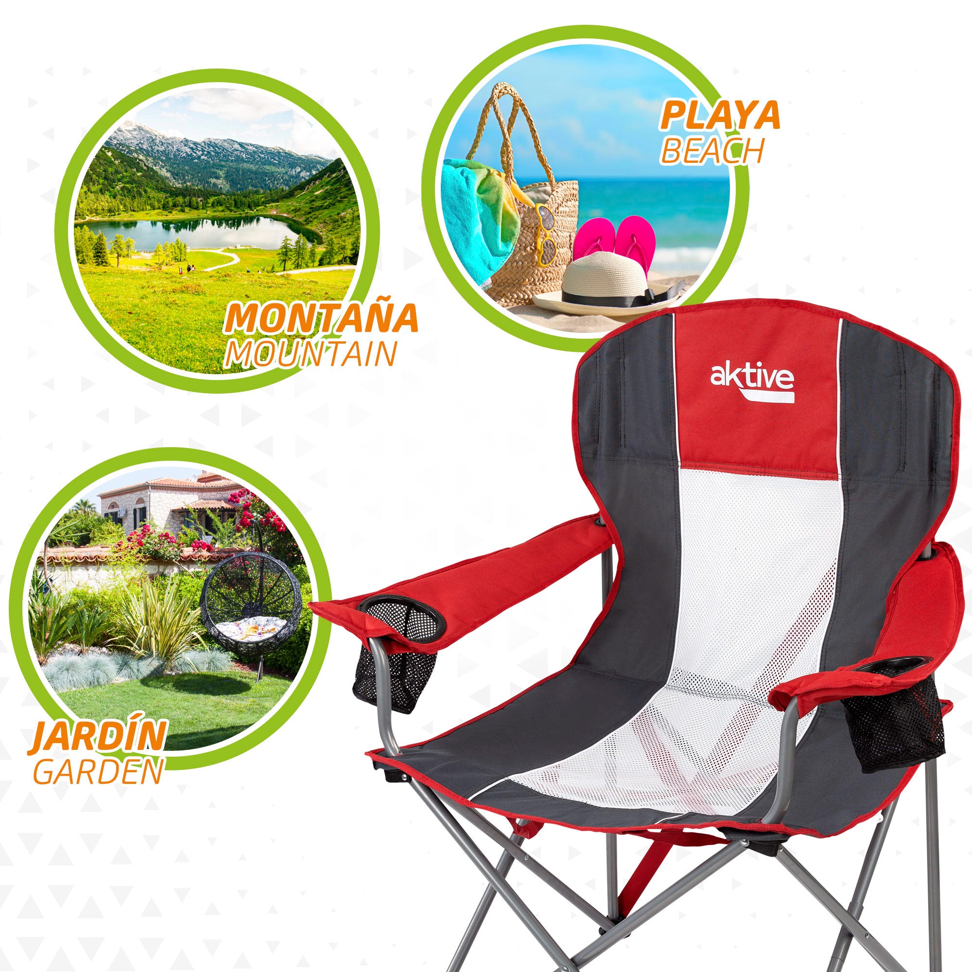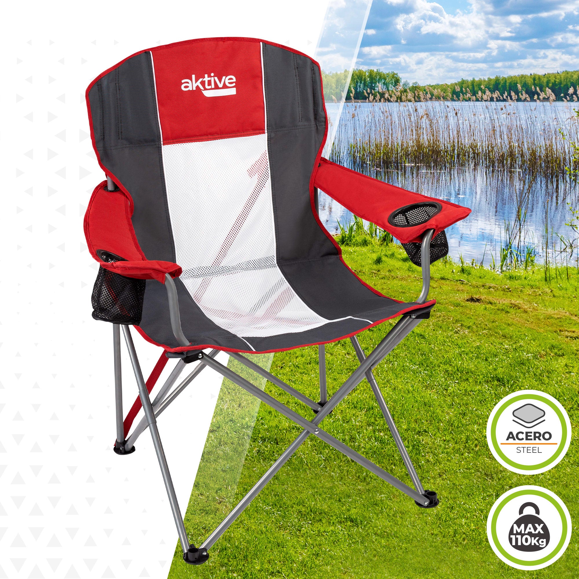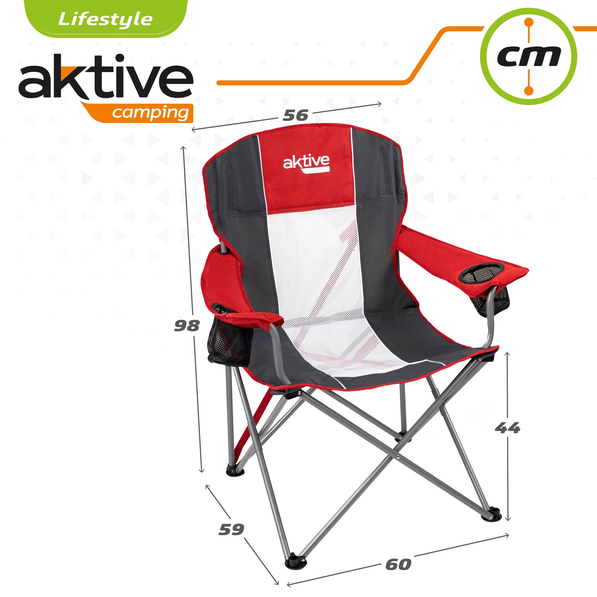 Cadeira de campismo dobrável XL vermelha e cinzenta para as suas escapadelas na natureza Aktive Camping