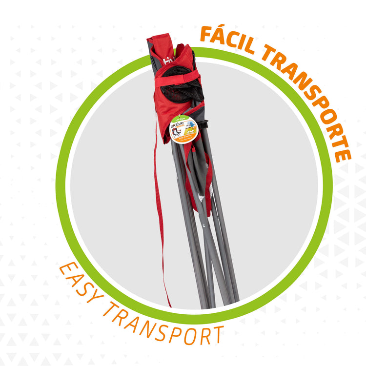 Inclui: braços de tecido com porta-copos em cada um deles, alça de transporte