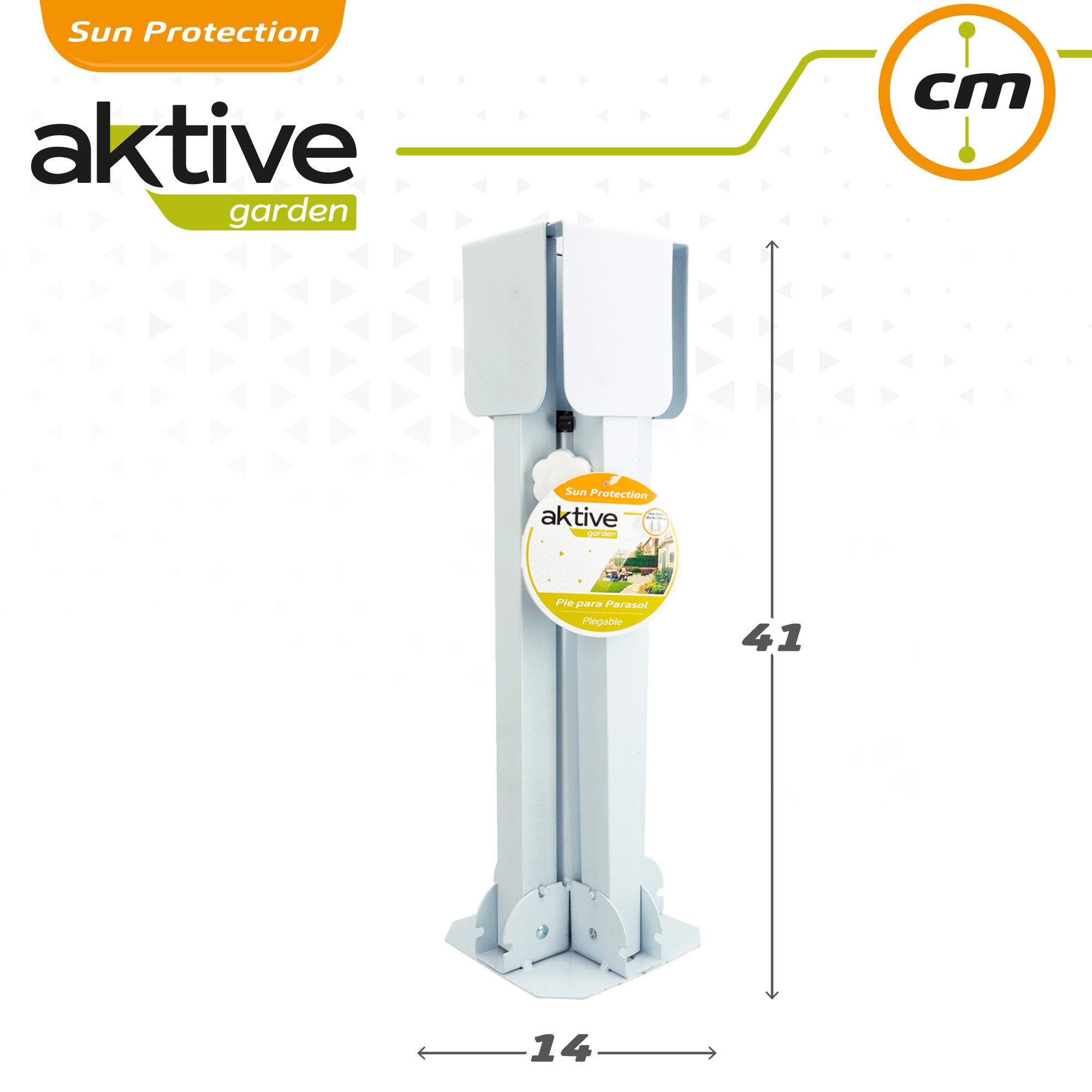 Com esta encomenda dobrável Aktive Garden, o seu guarda-chuva deixará de estar no chão, pois graças a este pé ficará firme e estável no seu jardim, terraço ou pátio. Construída em branco com 4 pés rebatíveis, com medidas desdobradas 64x85x32 cm e dobradas 41x14 cm, oferece um sistema muito fácil de montar o seu guarda-chuva com uma haste de 25 ou 32 mm com um peso máximo de 18,9 Kg.