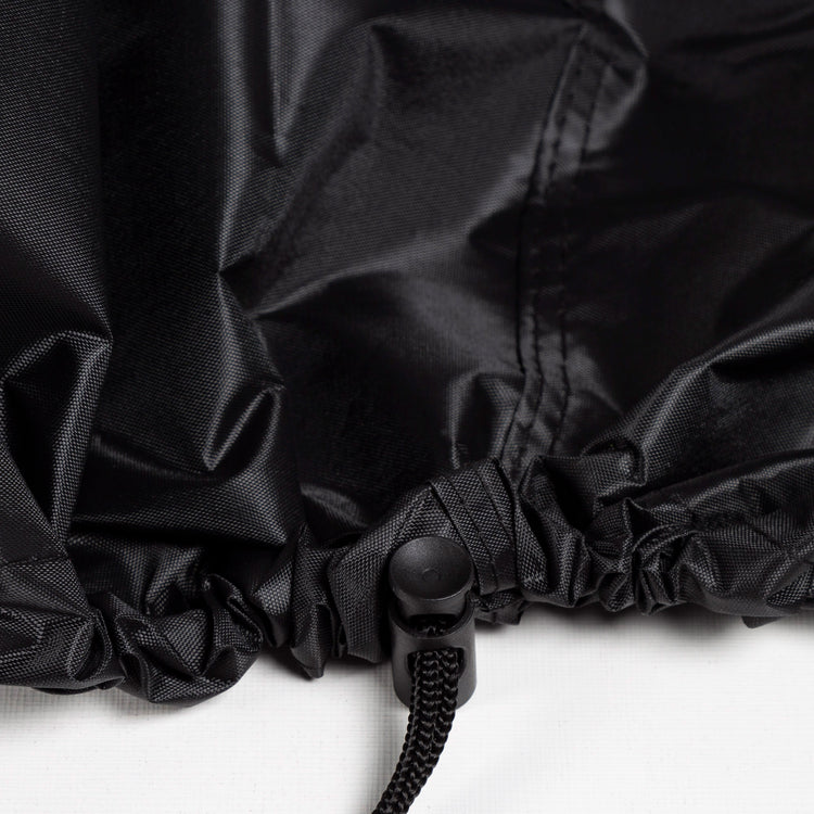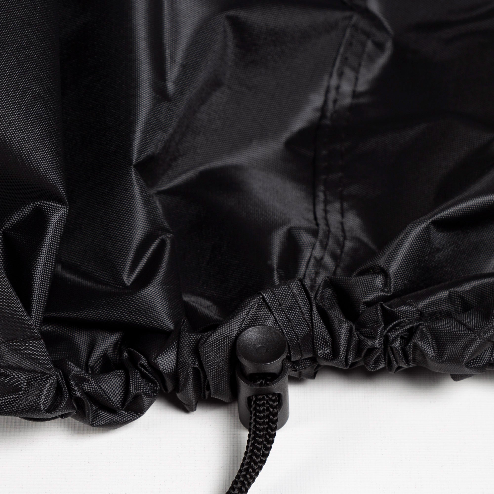 Design: cobertura preta 142x60x120 cm com corda para fixar a cobertura ao grelhador