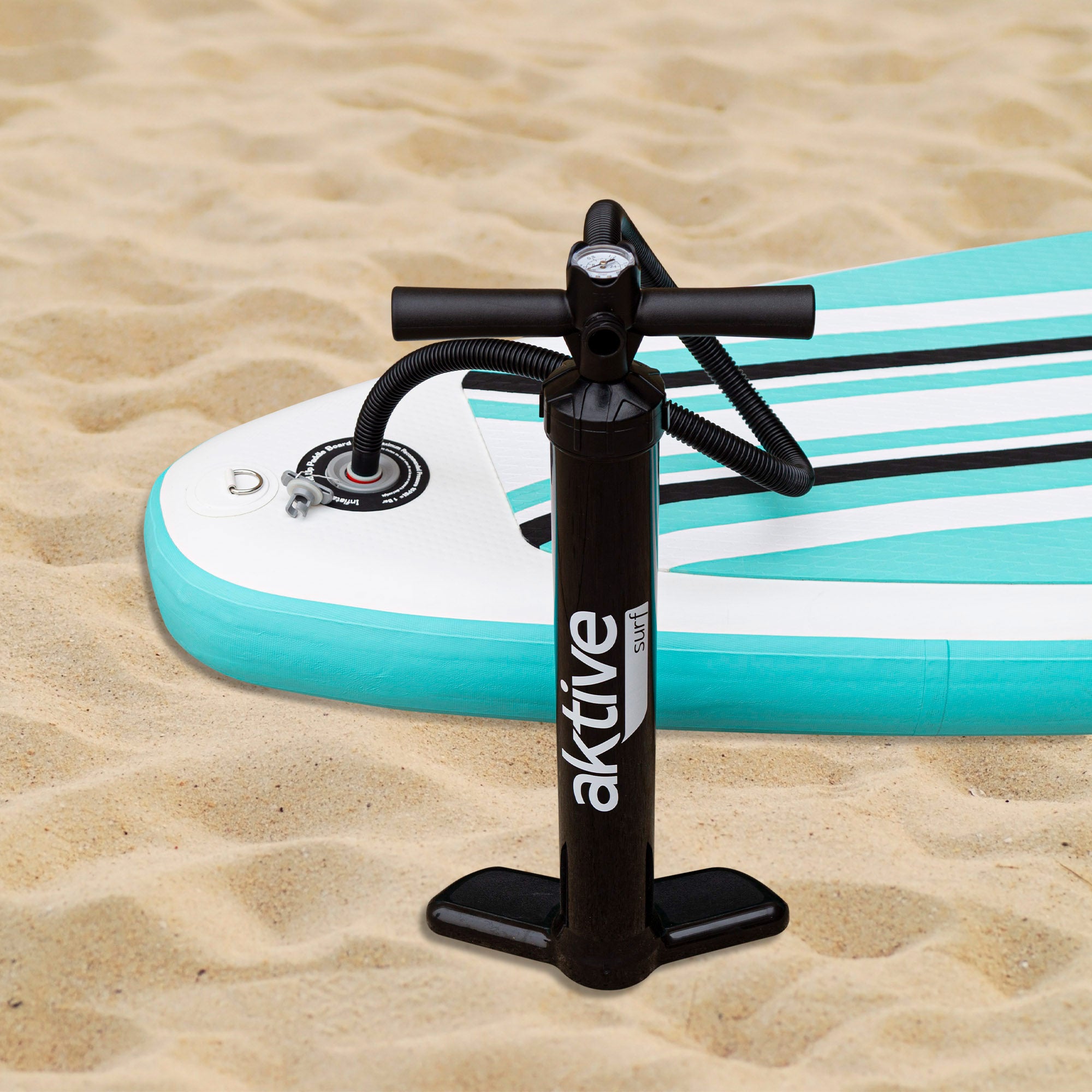 Encha e esvazie sua prancha de SUP com esta bomba de inflação manual da Aktive Surf. É um inflador de paddle surf de alta pressão que permite inflar pranchas de paddle surf infláveis até 30 PSI. Possui dupla ação para inflar e desinflar sua prancha de SUP. É de cor preta e mede 30 cm de largura, 7 cm de comprimento e 64 cm de altura. Inclui um manômetro para controlar a pressão e possui uma alça ergonômica. Bomba de enchimento leve e fácil de transportar, utilizada tanto para inflar pranchas de paddle surf como para caiaques insufláveis.